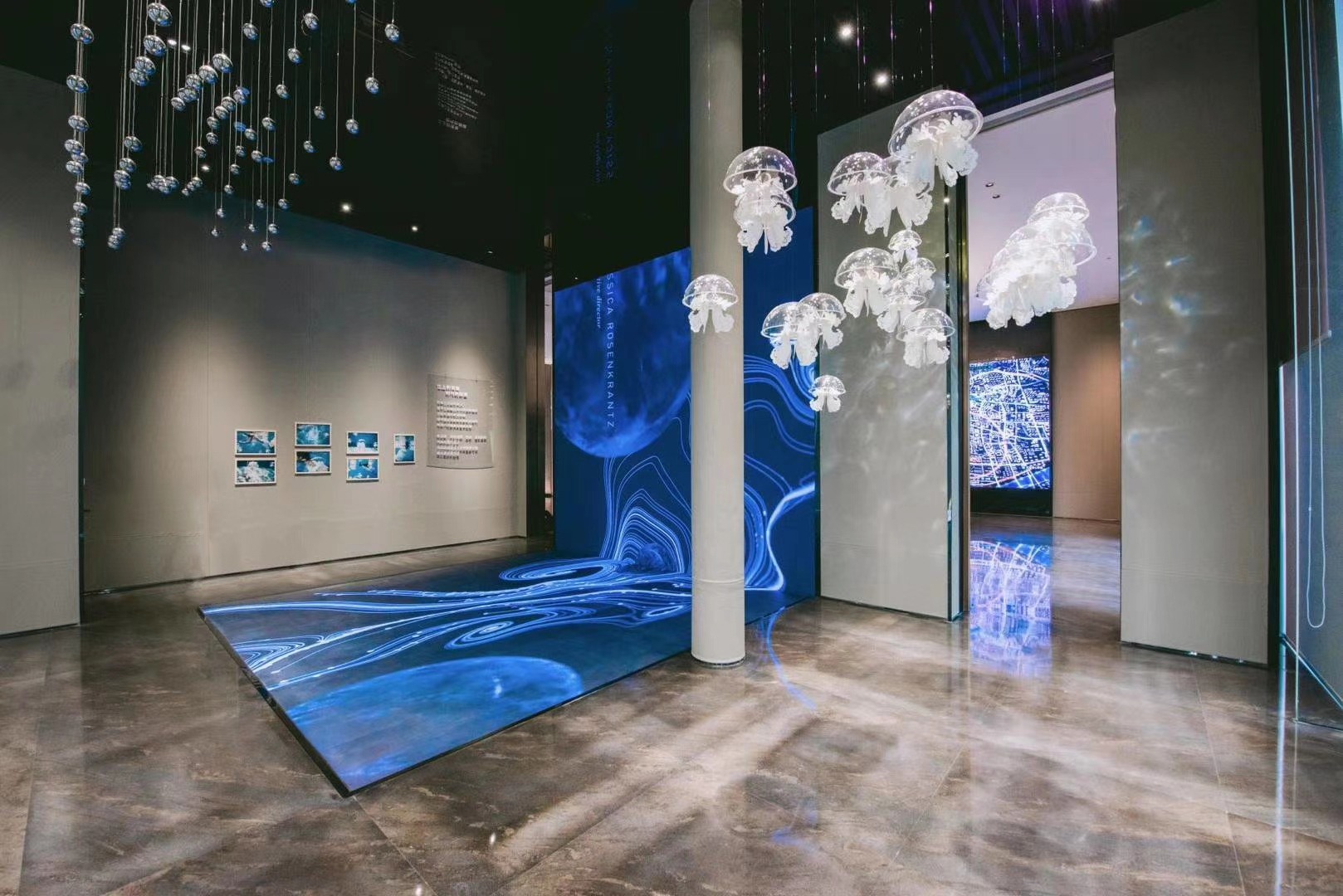 一块LED墙面屏和一块LED地面屏幕打造的展厅,L型立体环绕屏幕显示,可为用户营造视觉的沉浸感和体验感,打造出现代化数字科技展览馆项目成点亮,采用led地面屏来介绍展馆文化介绍,互动感应效果